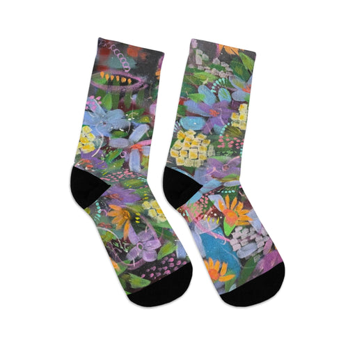 Colorful Floral Recycled Socks, Eco-Friendly Socks, Sustainable Fashion, Gift for Nature Lovers, Botanical Sock Design