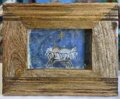 Hand Painted "Baby in the Manger" in Wood Frame